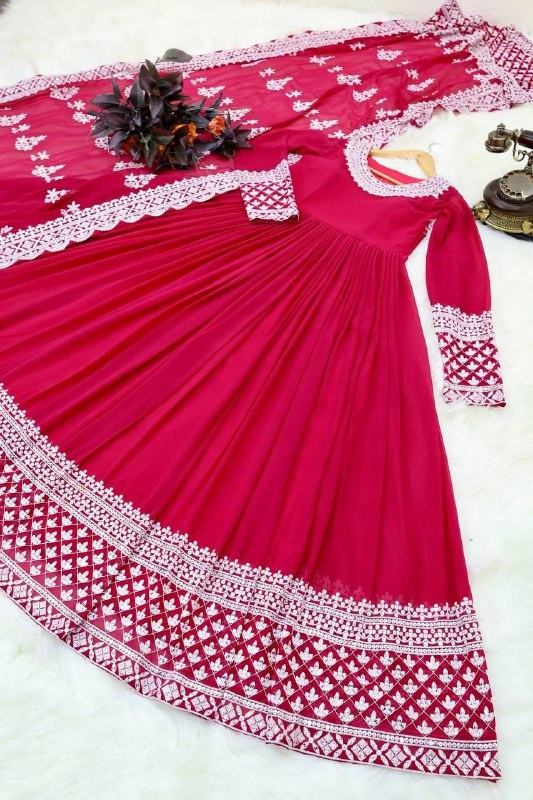 FATEMA FASHION Salwar Kameez Dupatta de Georgette Pesado con Bordado, Rosa, para Fiesta, Lavable a Máquina, Diseño Étnico Moderno