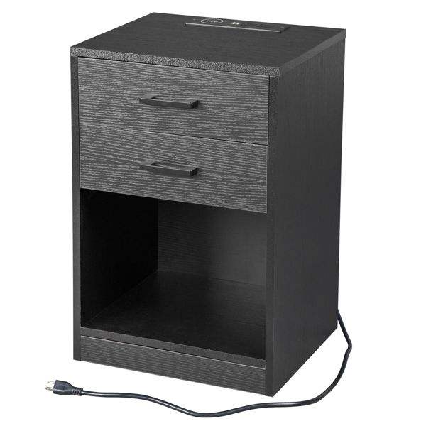 FCH 40*35*60cm Lámparas de mesita de noche negras Tablero de partículas Pegado Triamina Dos cajones con luz LED y enchufe