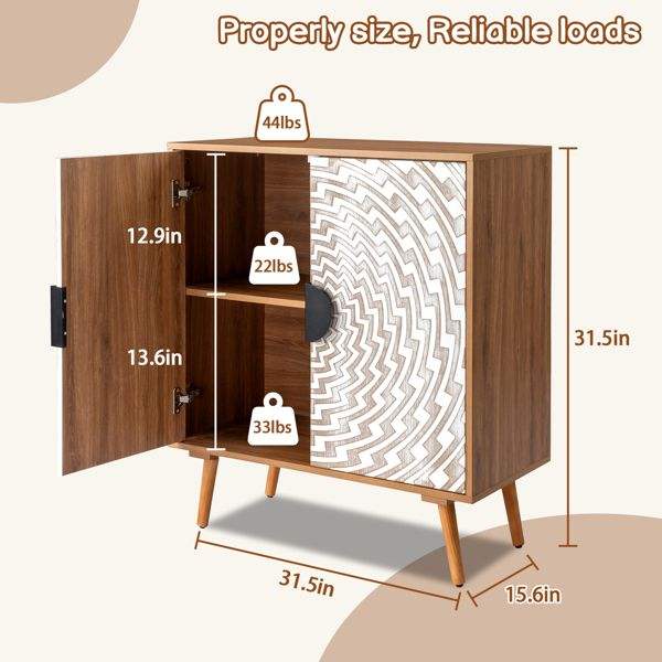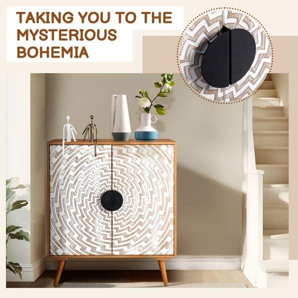 FCH Aparador con Patas Altas y Panel de Puerta de MDF, 80*39.5*80cm, Patrón Tallado, Carcasa Pintada con Spray, Tablero de Melamina Original