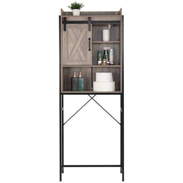 FCH Retro Style MDF and Triamine Iron Frame Sliding Door Three-Layer Bathroom Cabinet with Shelves