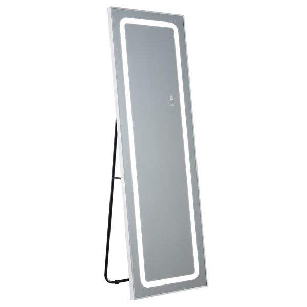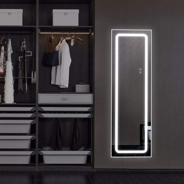 Espejo LED Rectangular de Ángulo Recto FCH de 63*20 Pulgadas, Aleación de Aluminio, Puede Colgarse o Apoyarse, Iluminación de Tres Tonos, Brillo Ajustable, Memoria de Energía