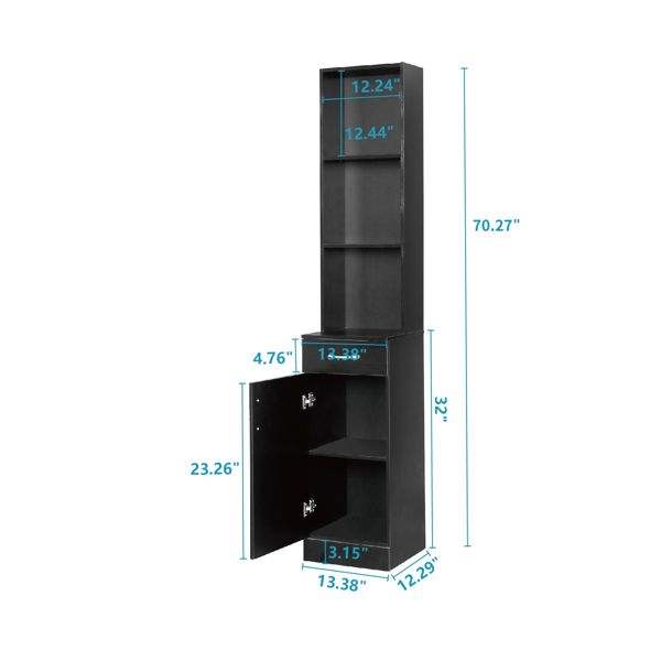 Gabinete de Pared FCH Triamine de Una Puerta, Un Cajón y Tres Compartimentos, Gabinete Alto de MDF Negro para Baño, Unidad Prefabricada