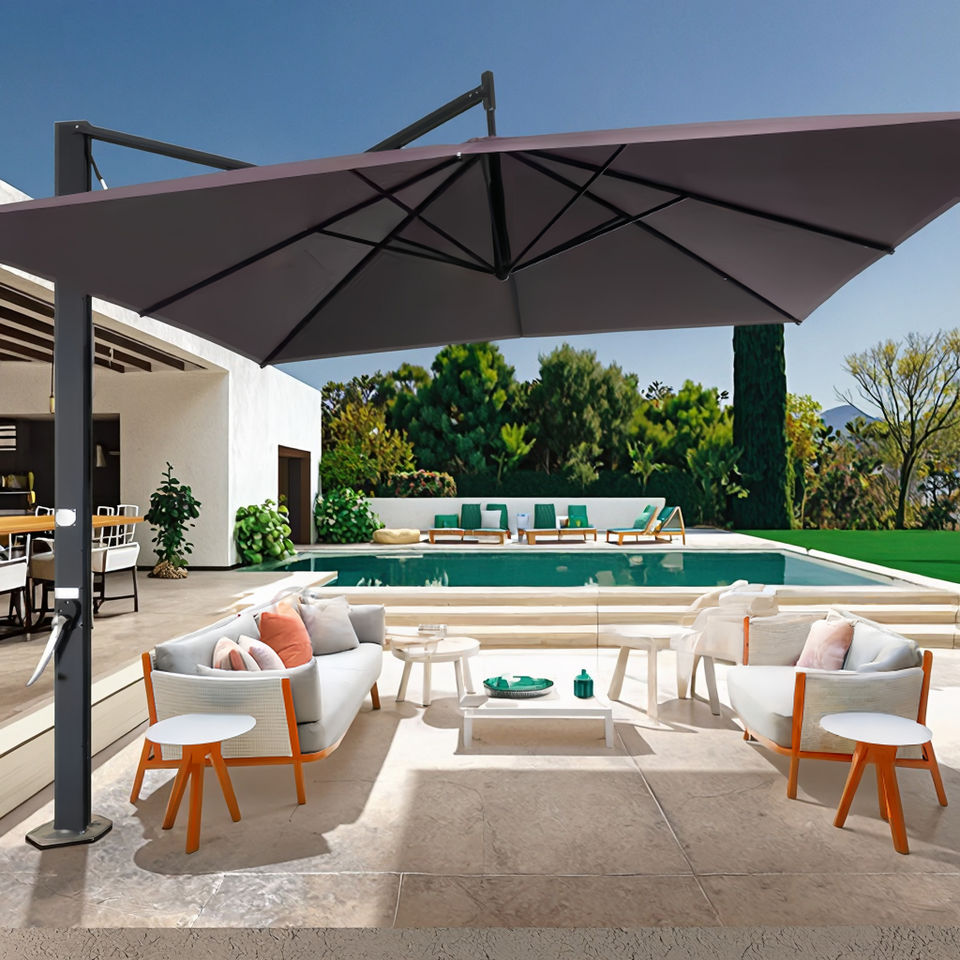 FEAMONT Paraguas de terraza comercial 280GSM Estructura de aleación de aluminio de tela teñida de hilo Adecuado para áreas al aire libre de cafeterías