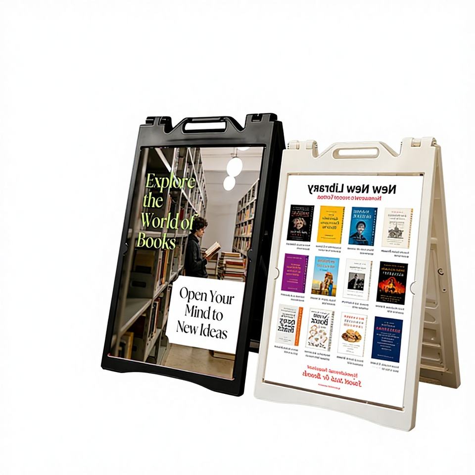 Expositor de Pósteres Portátil Moderno de Doble Cara FEAMONT, Personalizable con Logotipo Gráfico, para Exhibiciones de Marca, Conferencias, Salas de Exposición