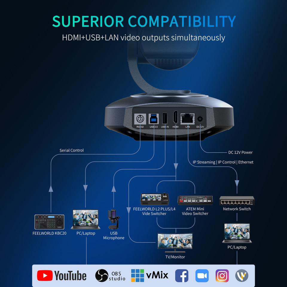 Cámara PTZ FEELWORLD 4K10X con Resolución 4K y Zoom 10X, USB HDMI para Videoconferencias, Transmisiones en Vivo, Iglesias y Servicios Religiosos