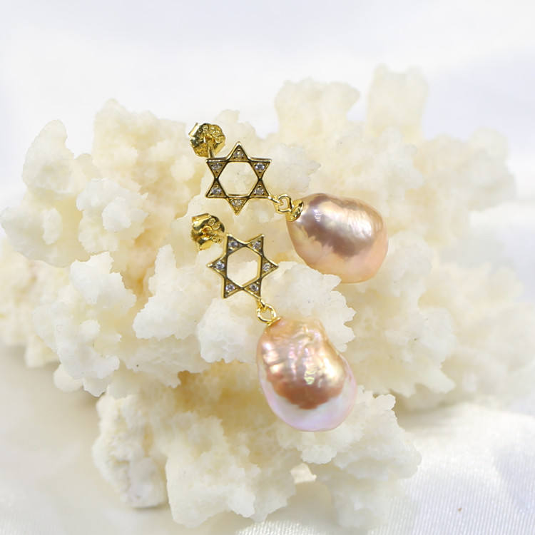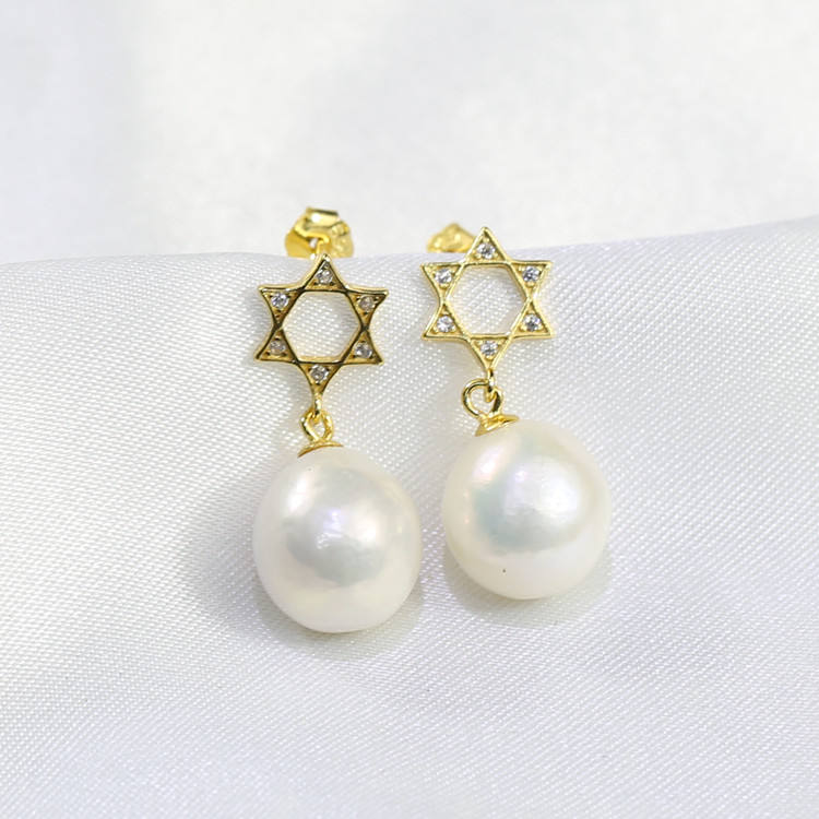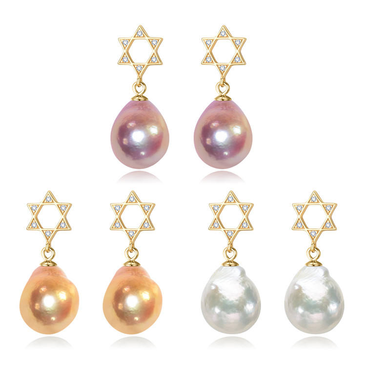 FEIRUN-pendientes de aro con forma de estrella, 10-11mm, edison, Bola de circonia cúbica natural, barroca, Perla