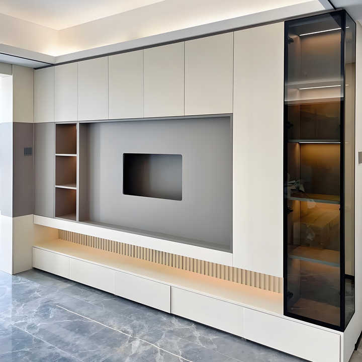 Muebles de sala de estar modernos FERLY, gabinete de TV simple, gabinete de TV moderno de madera maciza con almacenamiento