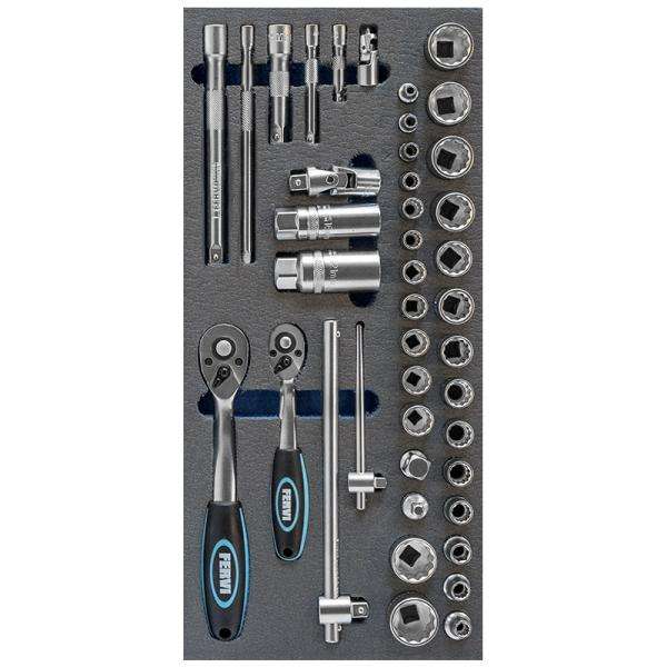 FERVI - TM01/025 Juego de enchufes de mano bihexagonales en bandeja de espuma (42 Uds.) -EAN 8012667309176 OTROS CONJUNTOS DE HERRAMIENTAS