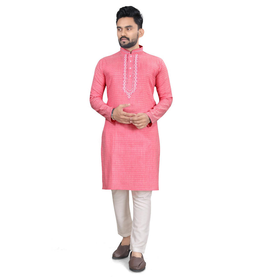 FESTIVAL WEAR ALGODÓN JACQUARD KURTA CON PIJAMA SEMI ALGODÓN ROSA CLARO