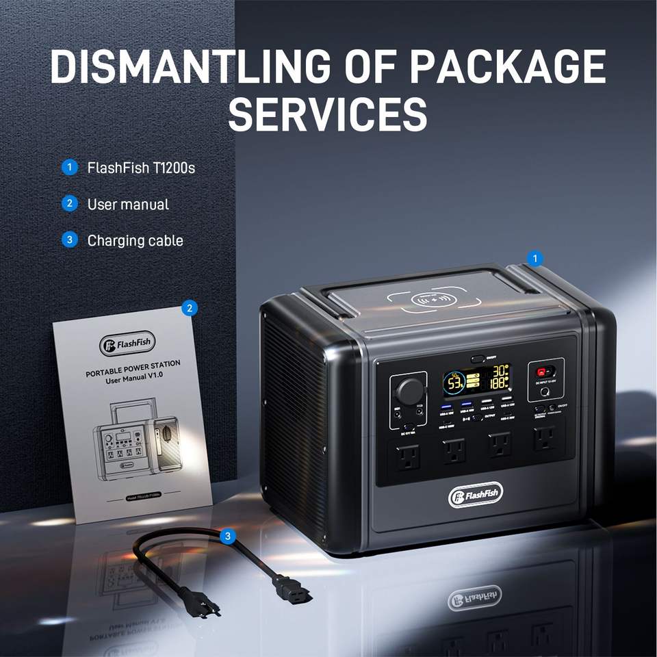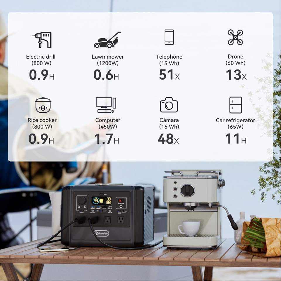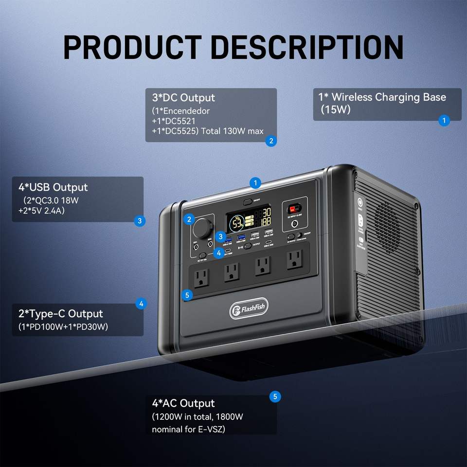 Estación de Energía Portátil Flashfish de 1200W, Batería de Respaldo Solar de Alta Capacidad LiFePO4 de 968Wh con 4 Salidas de CA