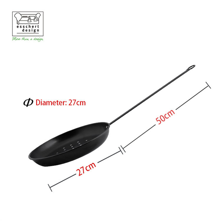 Sartén de Acero al Carbono FF156 Esschert Design, Antiadherente, para Cocinar al Aire Libre, con Mango Largo