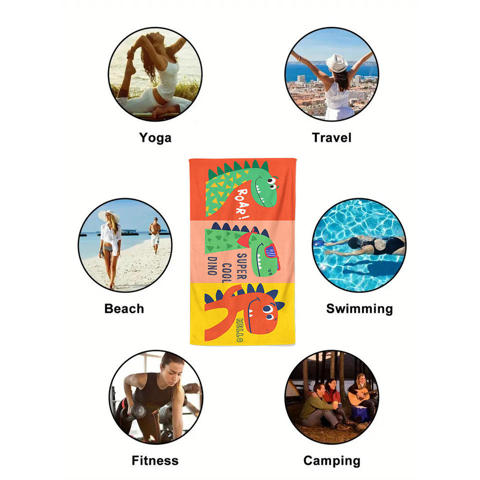FF4068 Patrón de dinosaurio Toalla de baño de piscina de viaje de secado rápido 80*160cm Toalla de playa de microfibra de gran tamaño sin arena