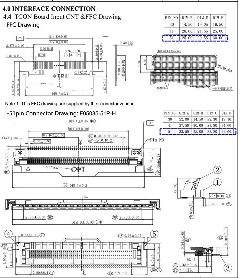 Conector FFC FPC 51P de 0.5MM de Ancho 29.5MM 29.55MM