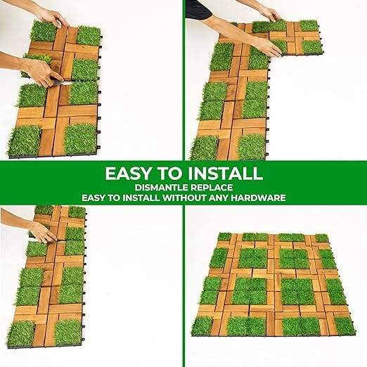 Azulejos cuadrados de mezcla de hierba de madera de Acacia moderna, aislamiento térmico antideslizante para interiores/exteriores, antibacteriano para balcón y habitación