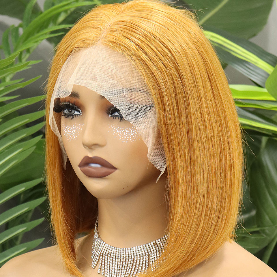 FH # 30 Pelucas Bob de Cabello Humano Liso Color Lino con Encaje Frontal Transparente 13x4, Peluca Corta de Cabello Vietnamita