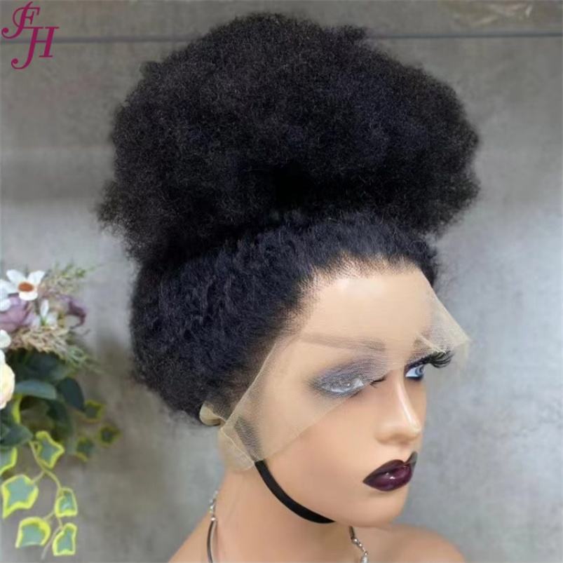 FH Precio barato 360 Pelucas frontales Cabello humano suizo Peluca con malla frontal transparente Peluca afro rizada