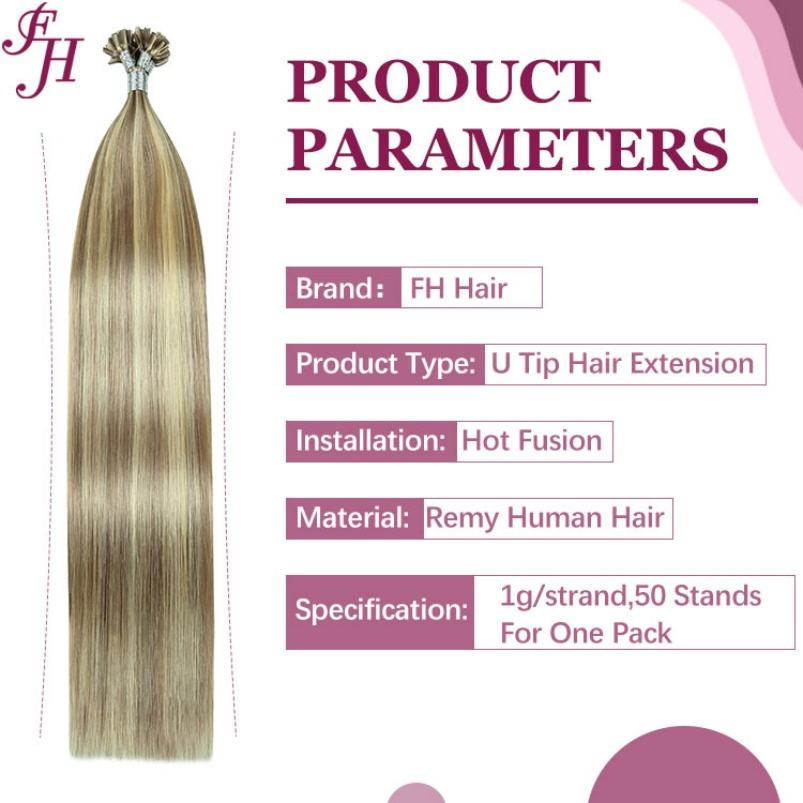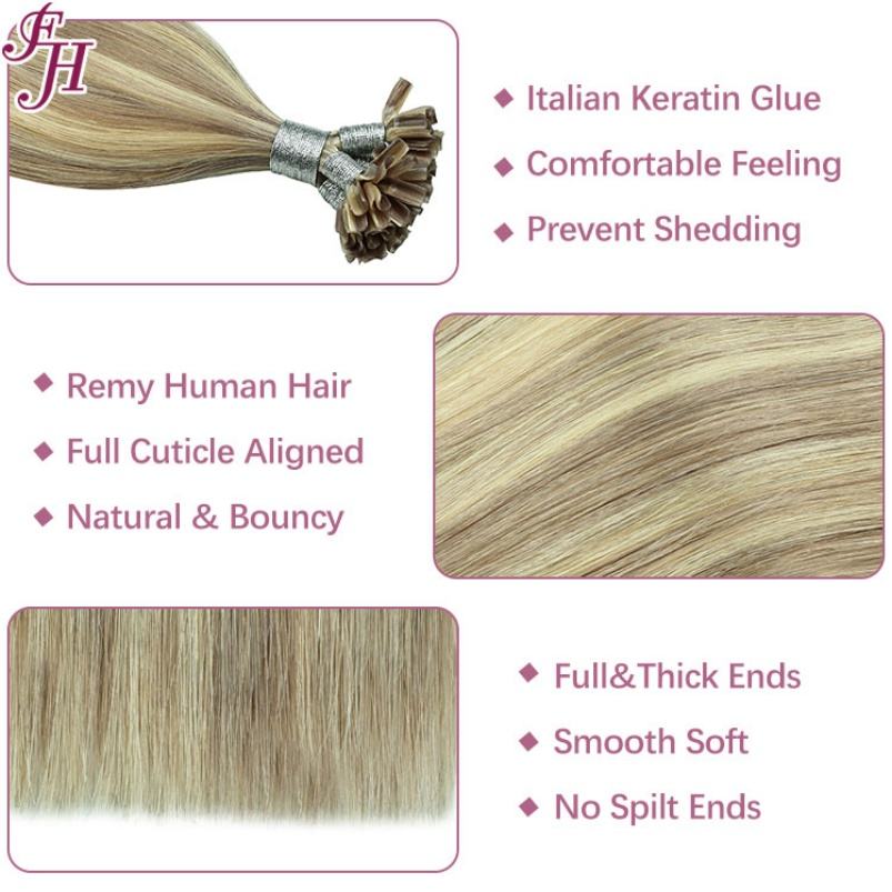 Extensiones de Cabello con Punta en U, Color Teñido, de Alta Calidad, Precio Económico de Fábrica FH, Extensiones de Cabello Humano 100% con Punta en U