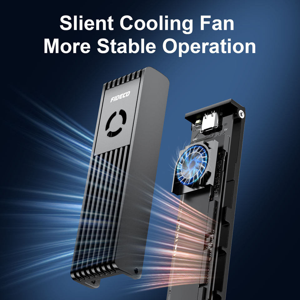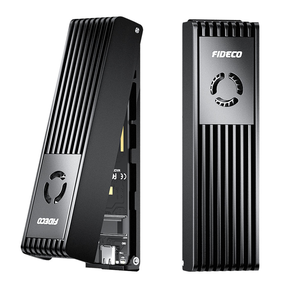 FIDECO - Nueva Carcasa USB 3.2 de 10 Gbps para NVMe SATA, Adaptador de SSD a USB con Ventilador de Refrigeración