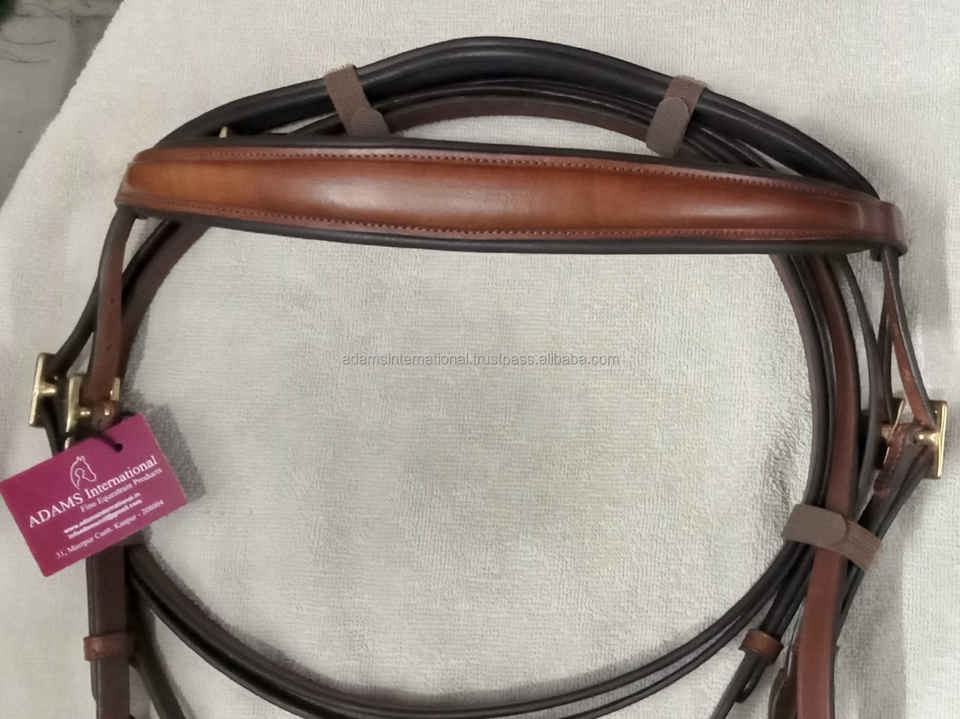 Brida doble de la más alta calidad para caballos Tocado de cuero acolchado suave y banda para la nariz con herrajes de latón
