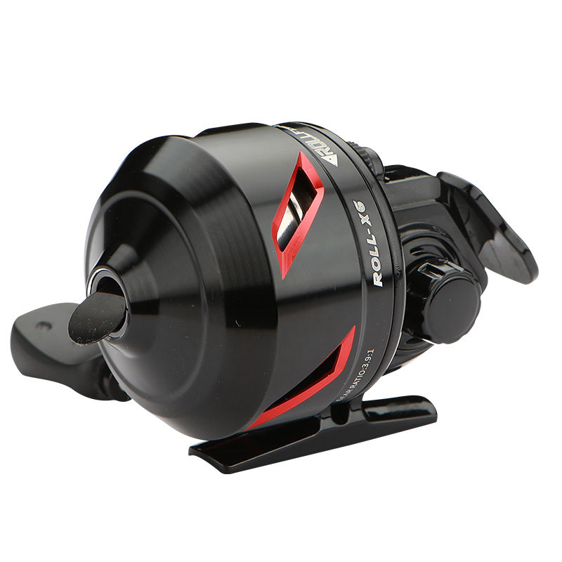 Carrete de pesca de caña de pescar, línea interna de tiro, con cierre integrado, con tirachinas y lazo cruzado