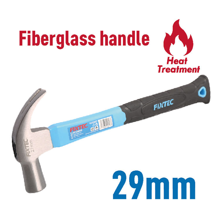 FIXTEC China Herramientas de mano Tipo británico Tratamiento térmico de acero al carbono Pequeño 27mm 29mm Carpintero Mango de fibra de vidrio Martillo de garra
