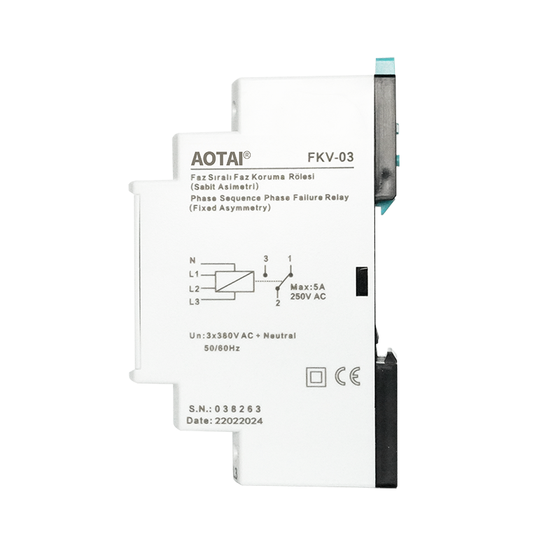 Relé de Secuencia de Fase y Protección de Fase Fallecida en Miniatura de Alta Potencia FKV-03 AOTAI con Interruptor Automático, 3*380V CA, Neutro, 5A Nominal, 50/60Hz, Pantalla LED