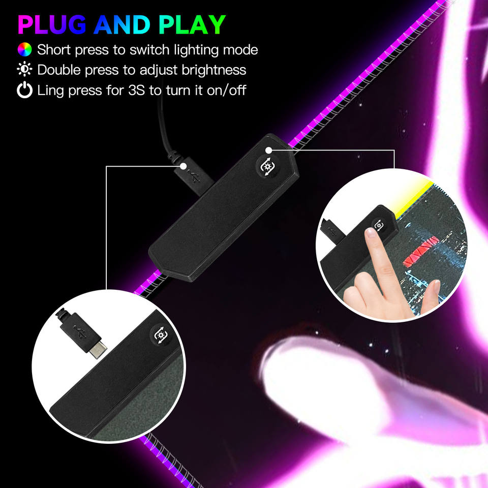 FLAME SNAKE Serie de dibujos animados Anime LED Light Mouse Pad XL , 80 30 Mouse Pad Led , RGB Mousepad Gaming 800 300mm