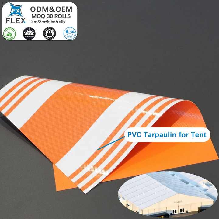 Lona de Poliéster Reforzada con PVC FLFX, con Rayas, para Cubiertas Industriales y Toldos