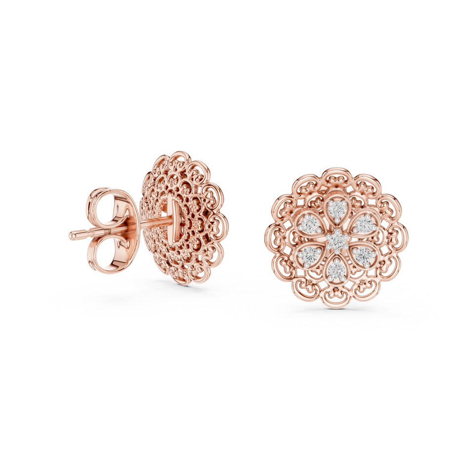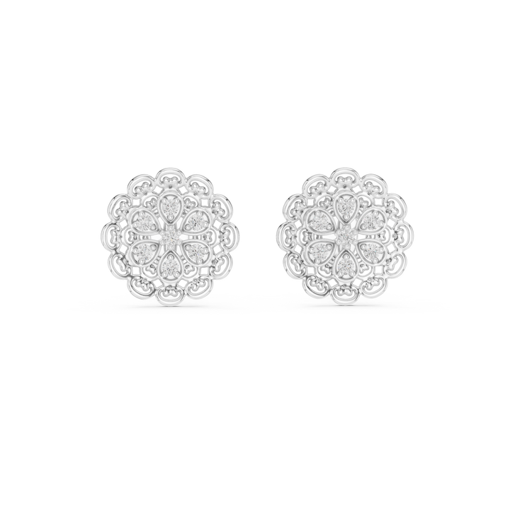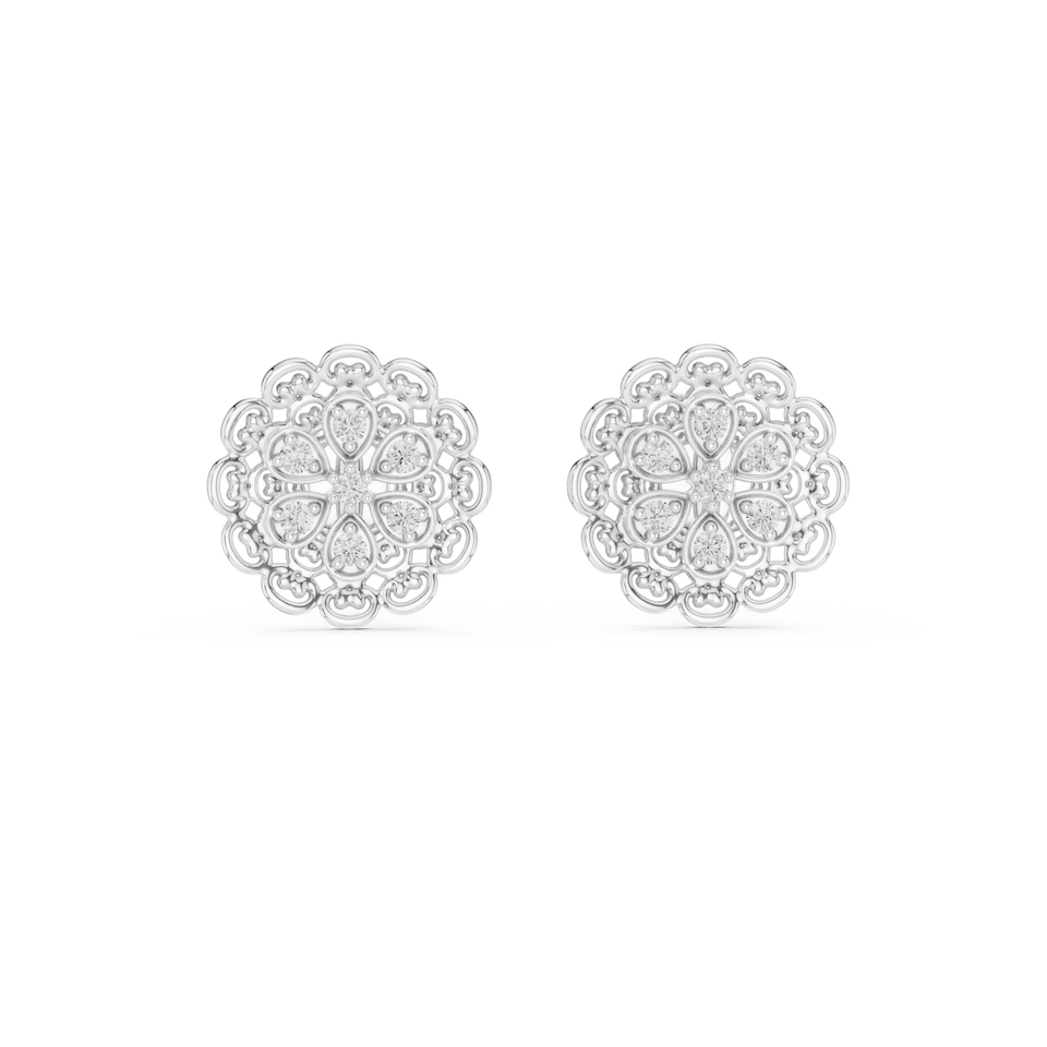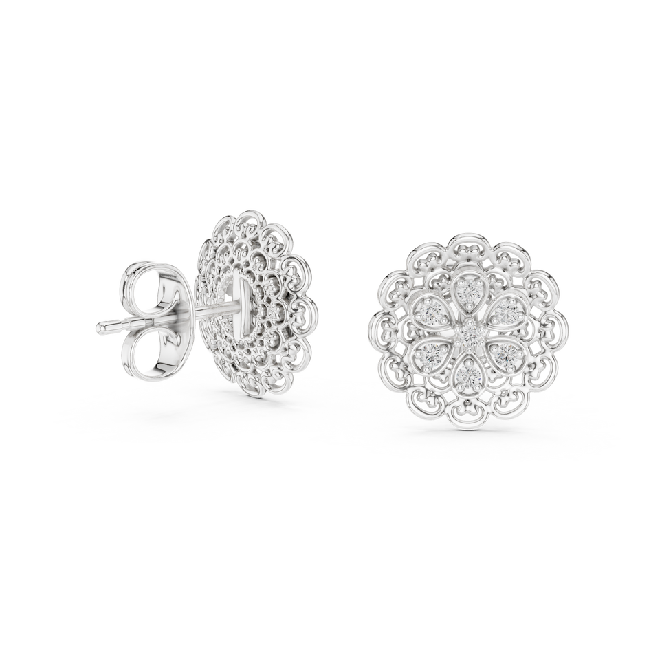 Juego de pendientes florales minimalistas con diamantes cultivados en laboratorio en oro blanco macizo de 18 quilates para compromiso, boda, fiesta, regalo, uso diario para mujer