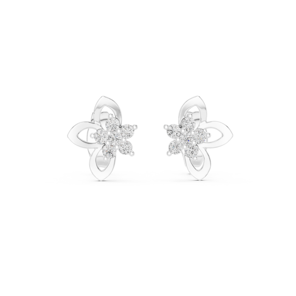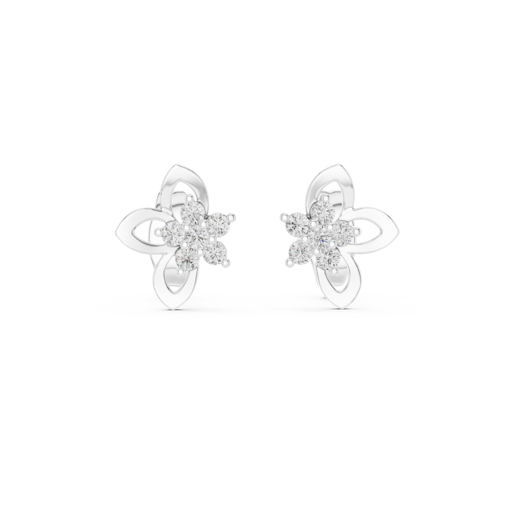 Juego de pendientes de diamantes cultivados en laboratorio con pétalos florales, engastados en oro blanco de 18 quilates, para mujer, para compromiso, boda, fiesta, regalo de San Valentín, uso diario