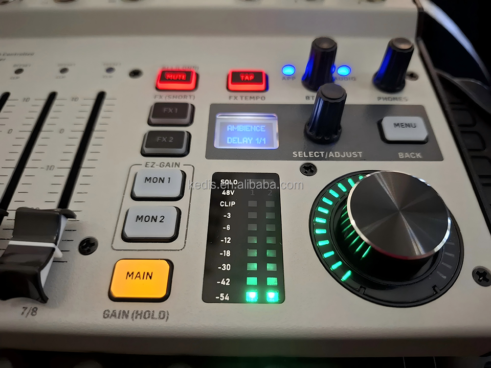 8 canales de entrada: Con 8 canales de entrada, este mezclador proporciona flexibilidad y escalabilidad para una amplia gama de configuraciones y ajustes de audio.