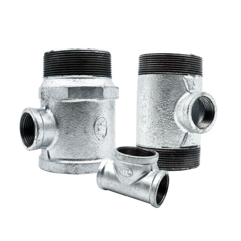 Accesorios de Tubería de Hierro Fundido Maleable Marca JTH, Aprobados por /FM, Rosca BSPT, Zincados, Baja Presión, Flexibles, Resistentes a Químicos y al Fuego