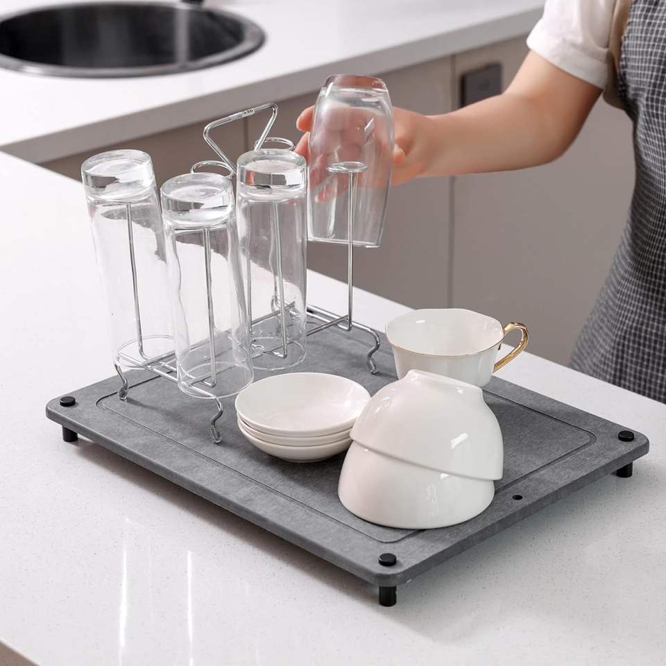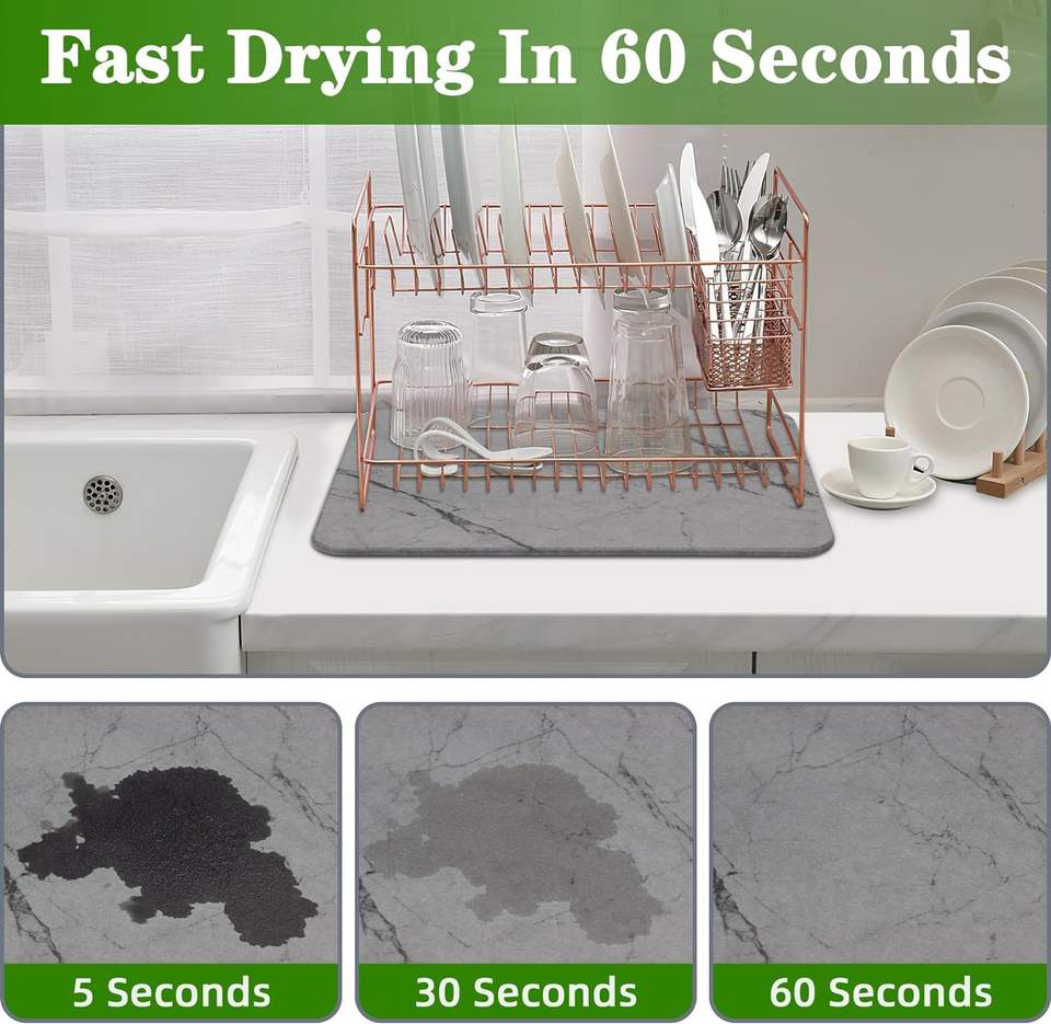 Estante para platos de piedra superabsorbente FMT, encimera de cocina de tierra de diatomeas, alfombrillas de secado de platos con almohadilla para pies, alfombrilla para vajilla