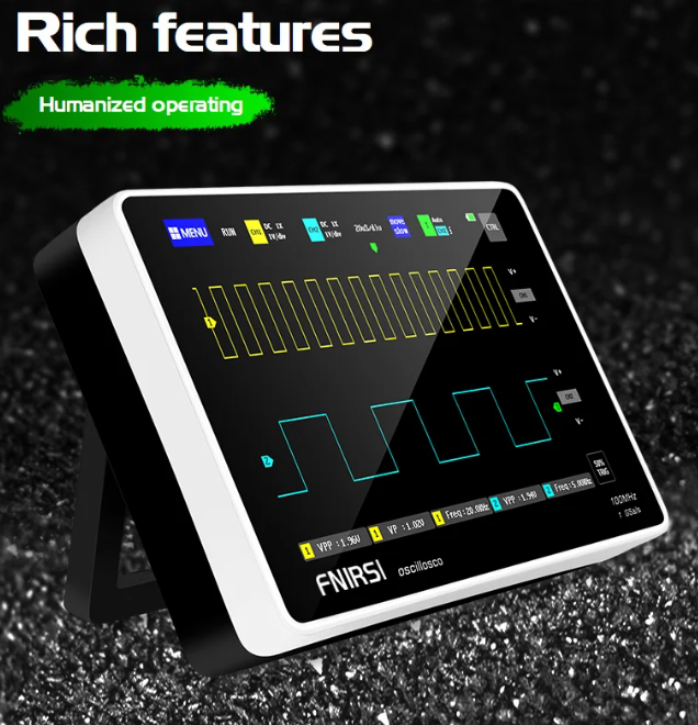 FNIRSI 1013D Osciloscopio de tableta digital de 7 pulgadas Doble canal 100M Ancho de banda 1GS Tasa de muestreo Mini tableta portátil Osciloscopio