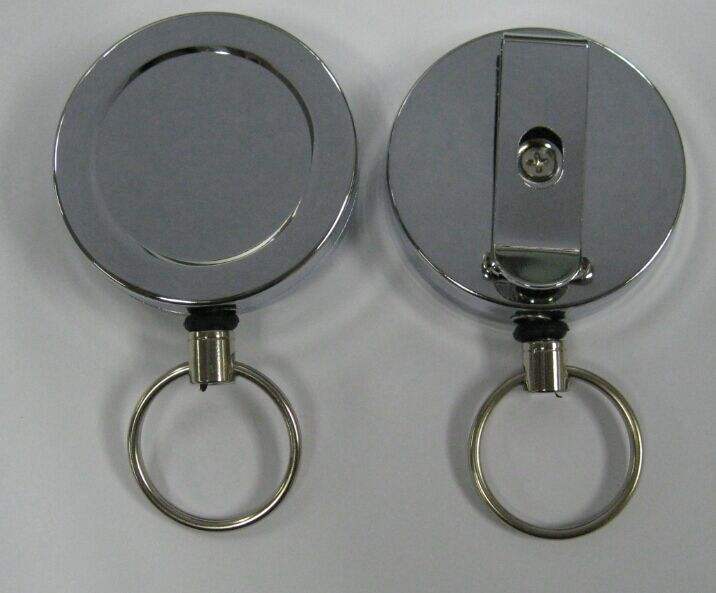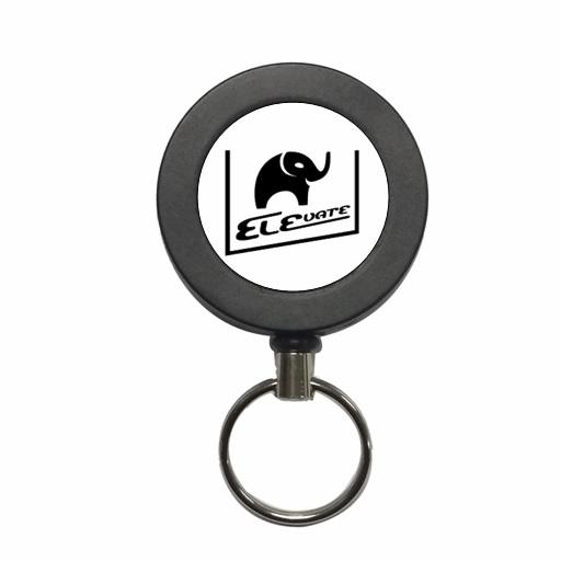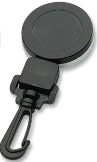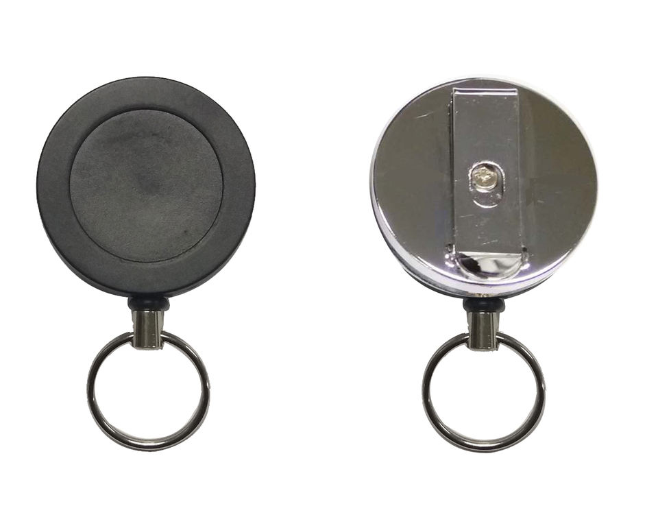 Carrete de Llave Retráctil FOCUS - Cubierta de Plástico y Base de Metal, 52 mm de Diámetro, Cable de 90 cm, Negro+Chromado
