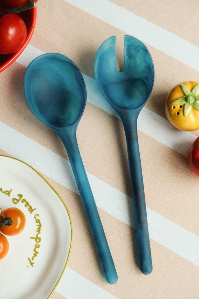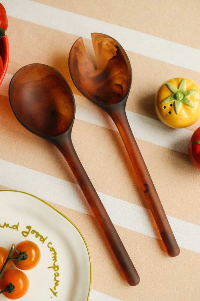 Cuchara para ensalada de resina hecha a mano, juego de cucharas decorativas para servir, tenedor para ensalada, cuchara para servir la cena, tenedor para mezclar ensaladas con mango.