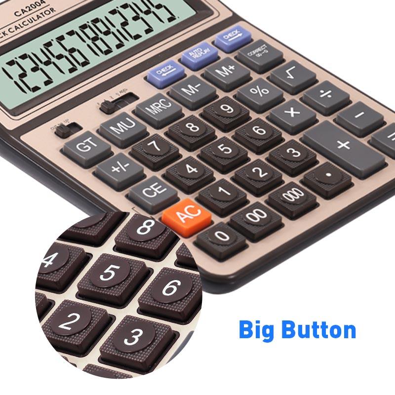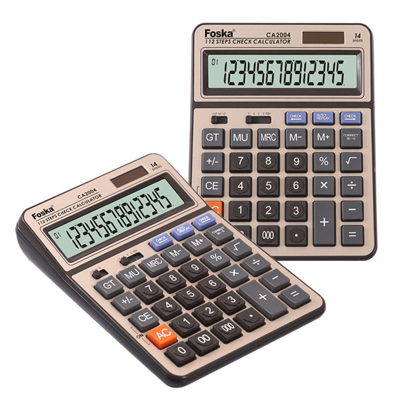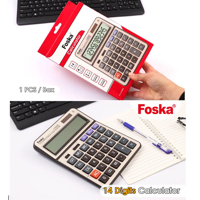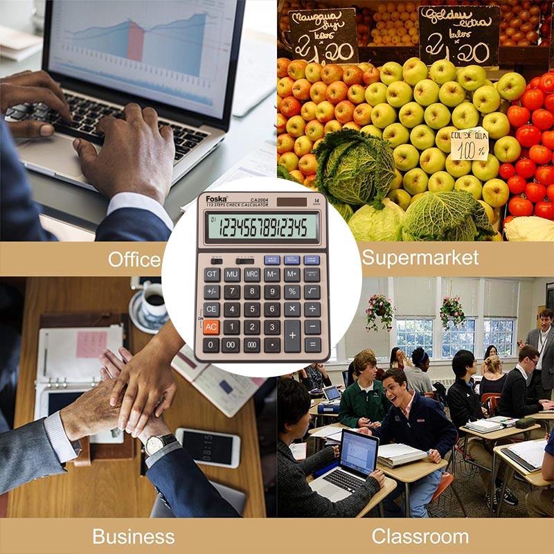 Calculadora de Escritorio Grande con Pantalla LCD FOSKA, Base Antideslizante, Alimentación Solar y por Batería para Uso Continuo y Computación Diaria