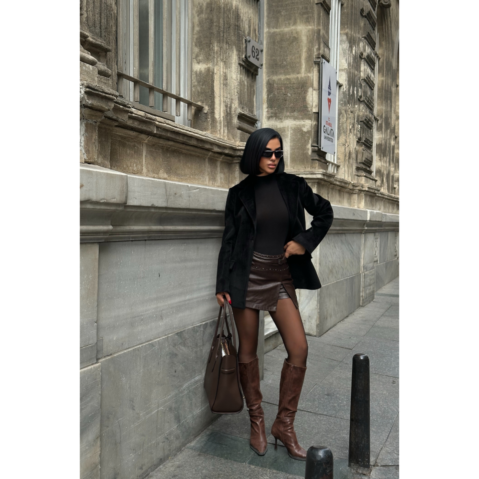 Chaqueta Blazer de un Solo Botón para Mujer, Marca FOX FABRIC, en Color Negro