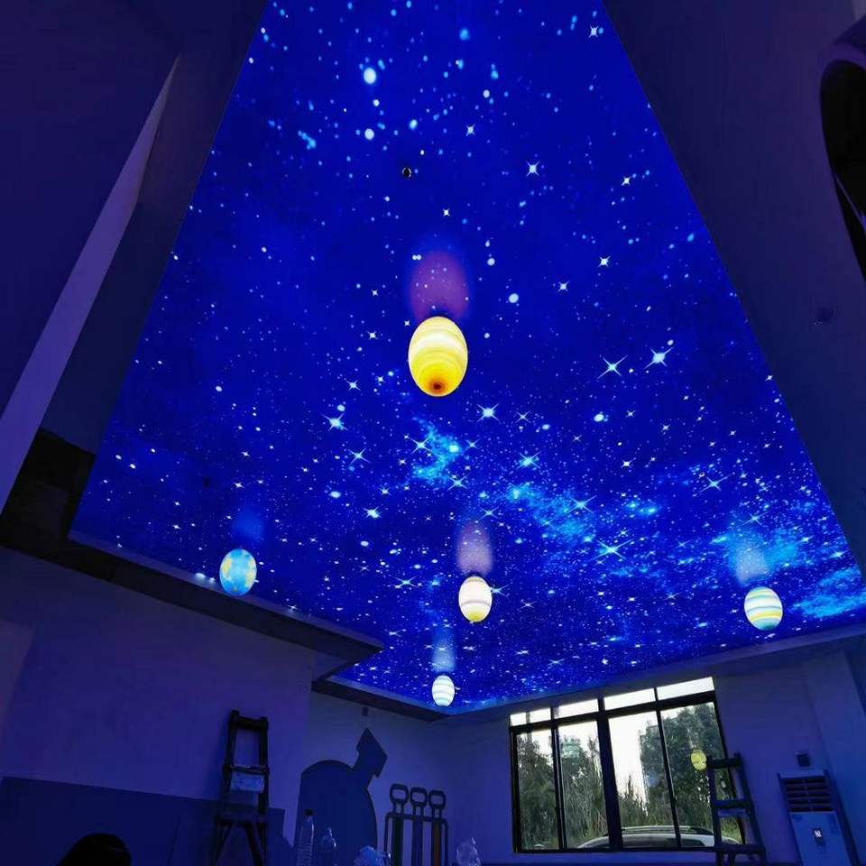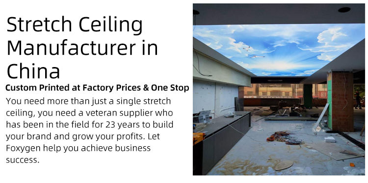 FOXYGEN recién llegado Material decorativo tela de PVC UV impreso techo elástico Laqure cielo estrellado PVC película de techo elástica