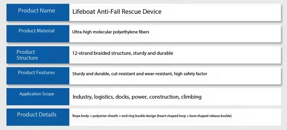 Dispositivo Anticaídas para Bote Salvavidas FPD 5/6T * Eslinga de 1m (Cuerda de Polietileno Polimérico) + Hebilla de Liberación CCS