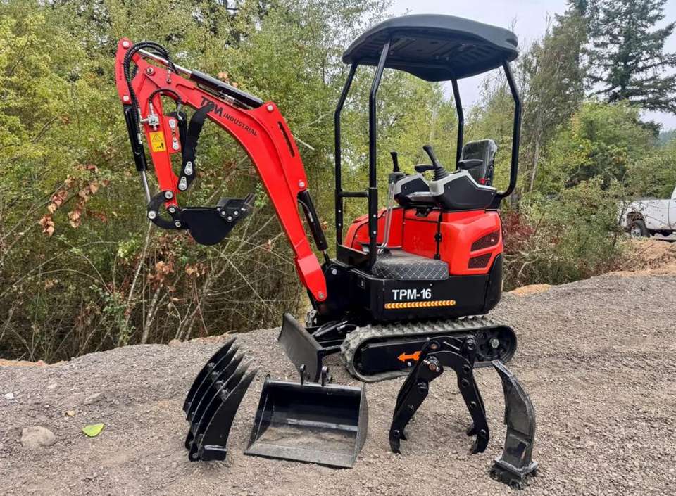 ENVÍO GRATUITO Miniexcavadora TPM 16 de 13.5 HP con cucharón de excavación de 16 pulgadas, controles piloto, brazo oscilante, aprobación EPA y CE, pulgar hidráulico auxiliar