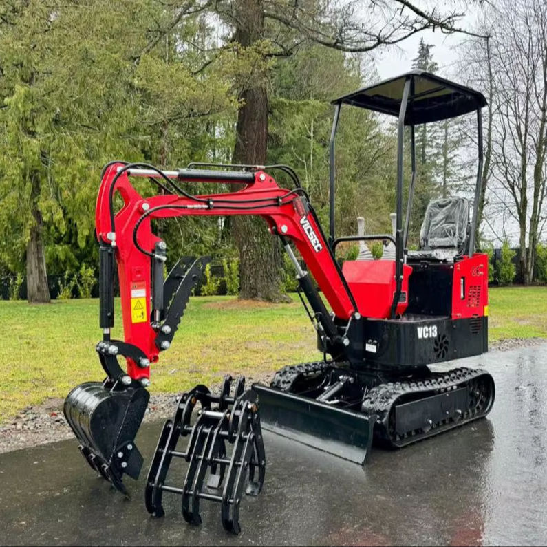 ENVÍO GRATUITO Excavadora Hidráulica Mini VICSEC VC13 de 13 HP con Cuchilla de Retroexcavación y Dientes, Pulgar Manual, EPA, CE, Sistema Hidráulico Auxiliar