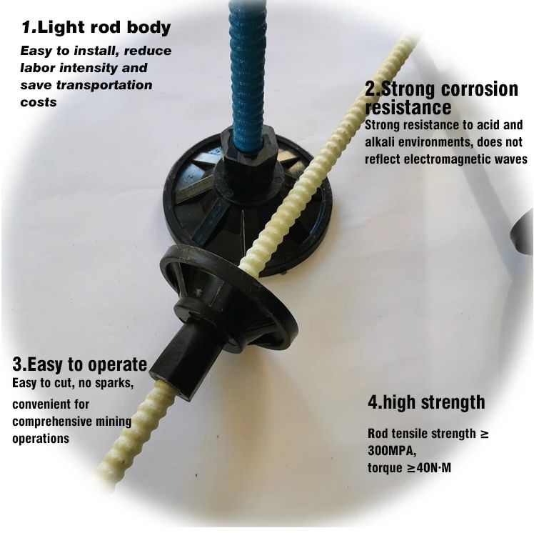 Perno FRP/varilla de anclaje de resina completamente roscada Cuerpo de varilla de plástico reforzado con fibra de vidrio