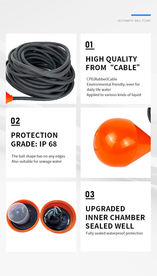 Serie FS 5m 10m Longitud del cable Protección IP68 Controlador automático de nivel de agua sucia Interruptor de flotador de bola de 220V