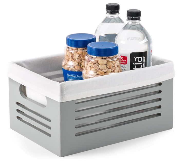 Armario decorativo FSC BSCI forrado lavable a máquina tela de lino suave estante gris organizador de madera cesta caja de almacenamiento de madera