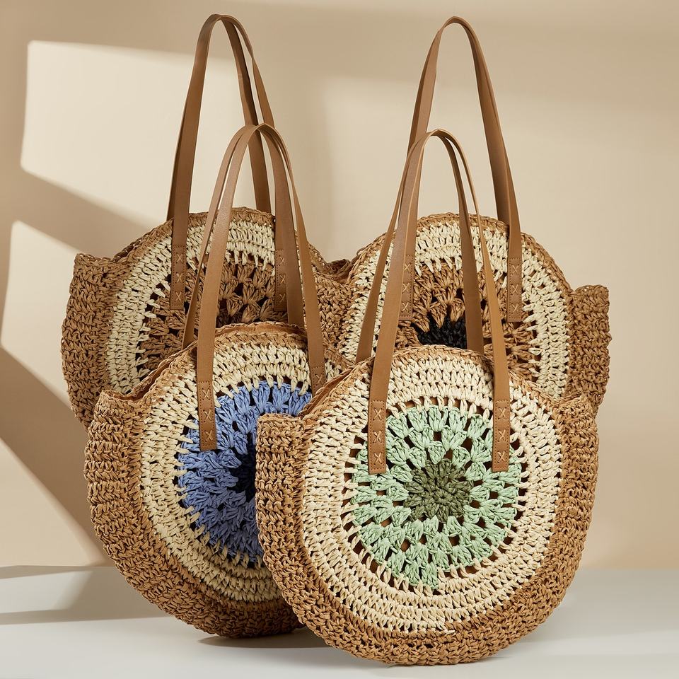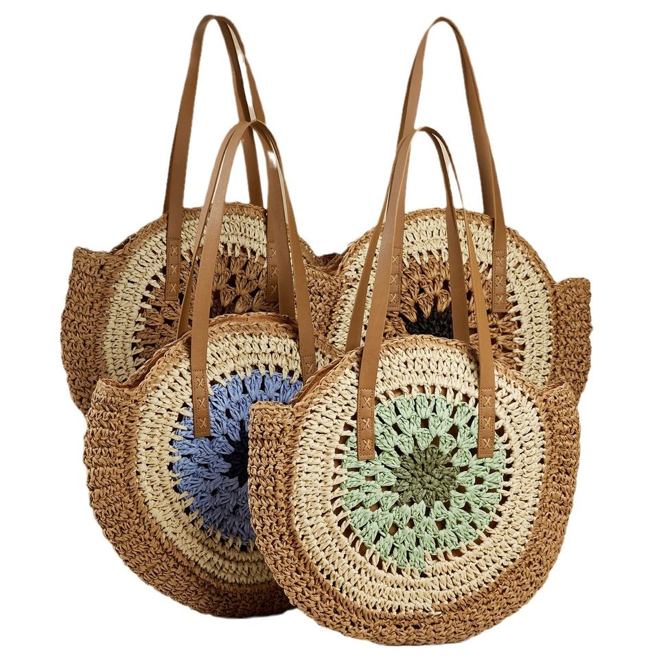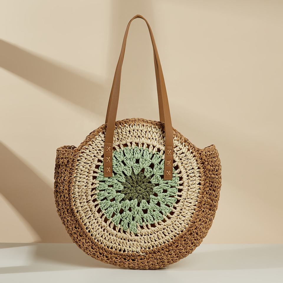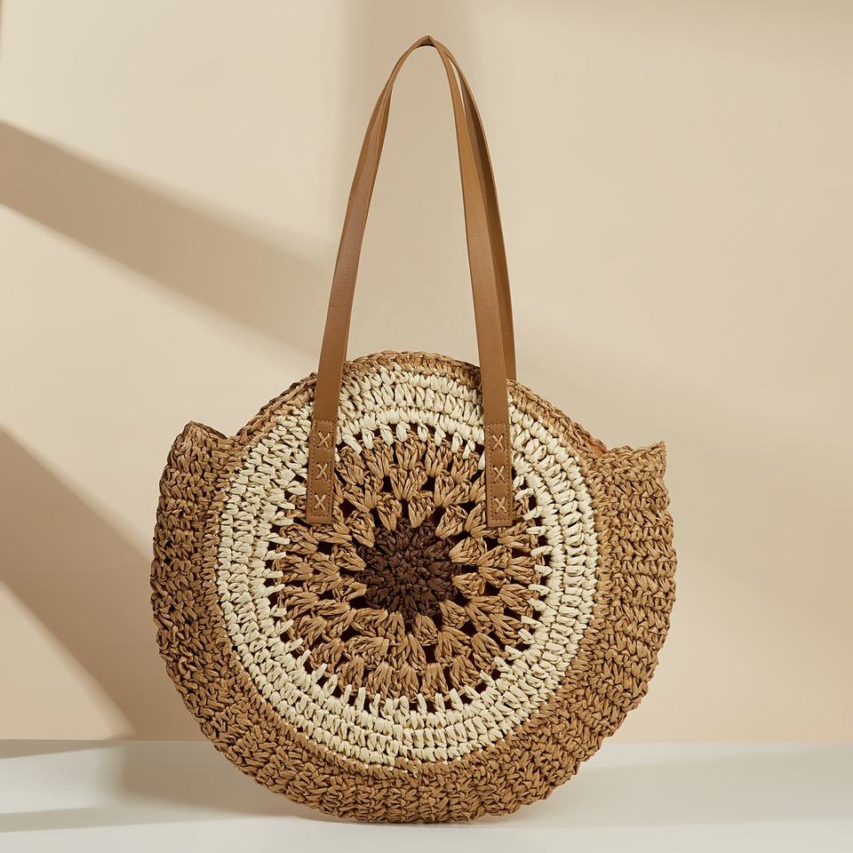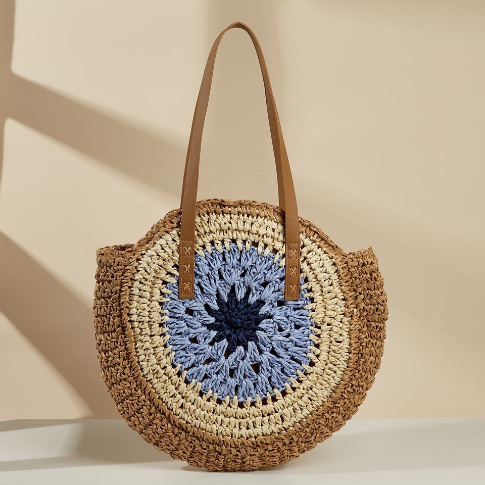 FSP431 recién llegado para bolsa de paja de playa cesta de mercado francés bolso de hombro de paja de verano bolso de forma redonda de moda personalizada