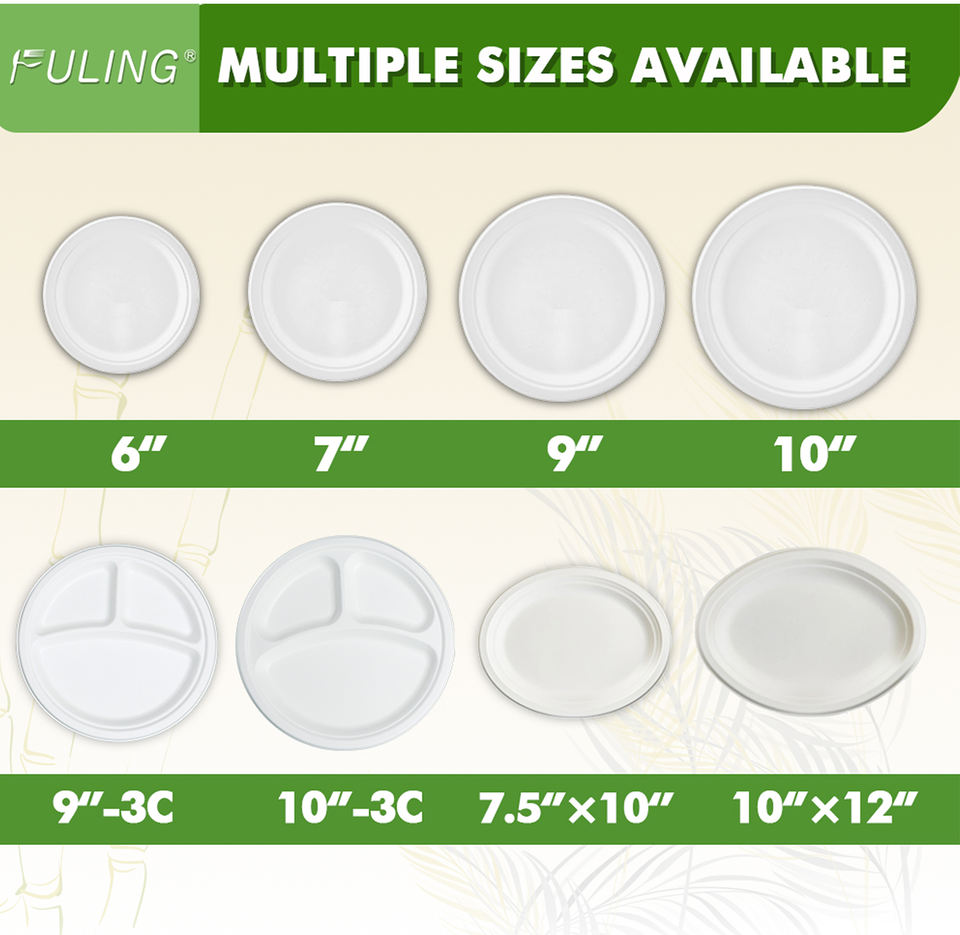 FULING - Vajilla Desechable Ecológica para Fiestas, Platos de Caña de Azúcar Resistentes, Compostables y Biodegradables, de 9 y 10 Pulgadas