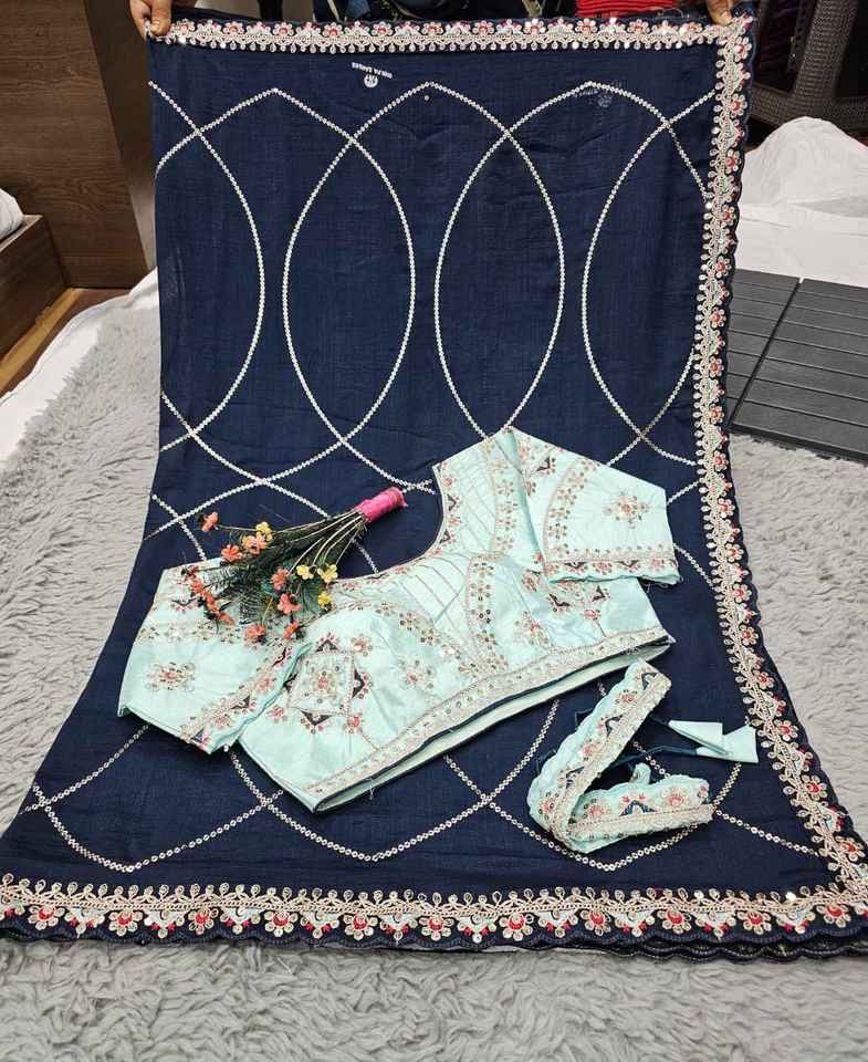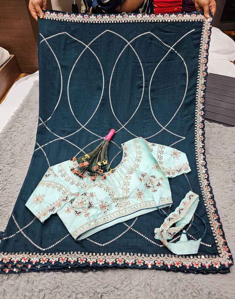 Work:dori + liquid Sequence & multi *Embroidery work on full saree