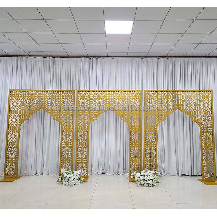 Fábrica FURUN, venta al por mayor, soporte de fondo de arco de Metal Floral de lujo, marco de arco tallado para decoración de eventos de fiesta de boda