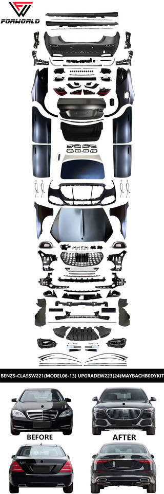 Kit Completo de Carrocería FW Factory, Parachoques Delantero y Trasero, Rejilla, Guardabarros, Capó, Faros para BENZ Clase S W221 (06-13) ACTUALIZACIÓN W223 (24) MAYBACH